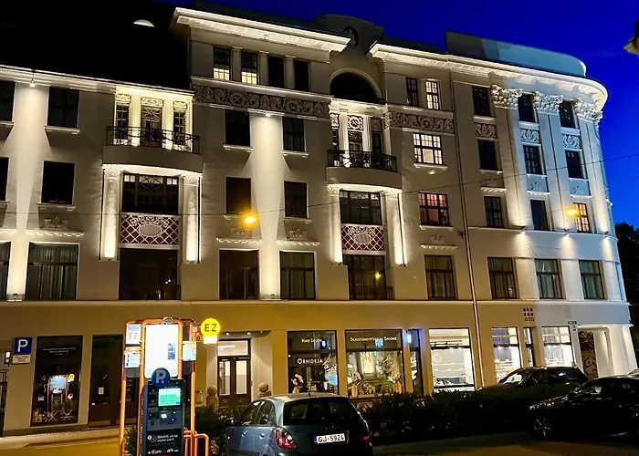 Lägenheten är belägen ca 250 meter från busshållplatsen Merkela iela och inom 10 minuters promenad från järnvägsstationen Riga Central.